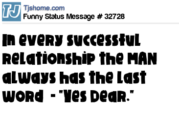 - # 116732 In every successful relationship the MANalways has the last word,,,"Yes Dear"