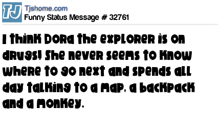 - # 11070 So the baby was watching Dora The Explorer today. For some reason, they were making donkey noises. My first thought was Dora had been deported and was now in Tijuana doing a "show" with a donkey! Glad I was wrong.