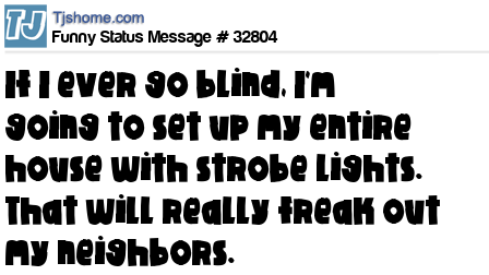 X If I ever go blind, I'm going to set up my entire house with strobe lights. That will really freak out my neighbors.