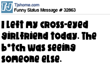 X I left my cross-eyed girlfriend today. The b*tch was seeing someone else.
