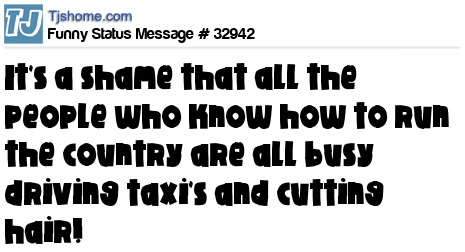 X is It's a shame that all the people who know how to run the country are all busy driving taxi's and cutting hair!