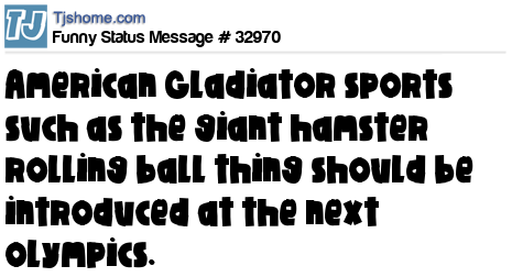 X American Gladiator sports such as the giant hamster rolling ball thing should be introduced at the next olympics.