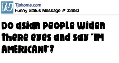 - # 156158 I'm asian but not "love you long time" asian. More like "love you for 10 min, roll over, and go to bed" asian.