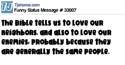 - # 147150 The Bible tells us to love our neighbours, and also to love our enemies,probably because generally they are the same people!