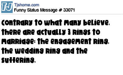 X says contrary to what many believe, there are actually 3 rings to marriage: the engagement ring, the wedding ring and the suffering.