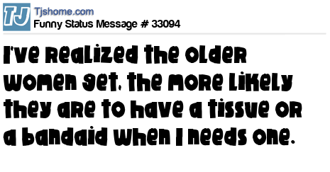 X I've realized the older women get, the more likely they are to have a tissue or a bandaid when I needs one.