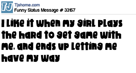 X is I like it when my girl plays the hard to get game with me, and ends up letting me have my way
