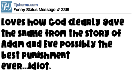 X loves how God clearly gave the snake from the story of Adam and Eve possibly the best punishment ever...idiot.