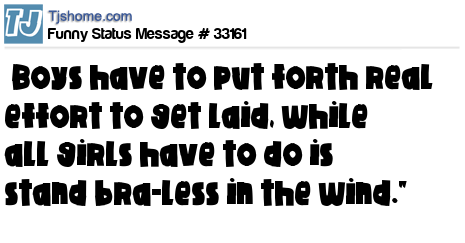 X is Boys have to put forth real effort to get laid, while all girls have to do is stand bra-less in the wind."