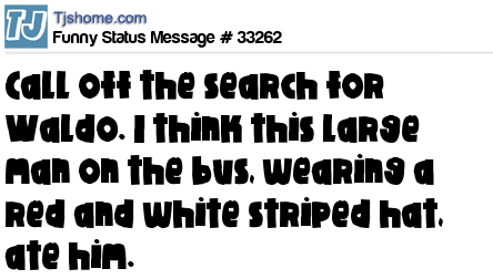 X  Call off the search for Waldo. I think this large man on the bus, wearing a red and white striped hat, ate him.