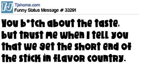 X  You b*tch about the taste, but trust me when I tell you that we get the short end of the stick in flavor country.