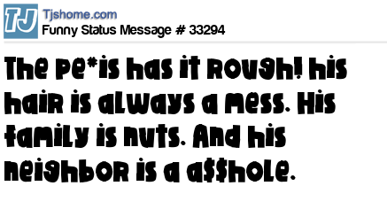 X says The pe*is has it rough! his hair is always a mess. His family is nuts. And his neighbor is a a$$hole.