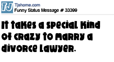 X It takes a special kind of crazy to marry a divorce lawyer.