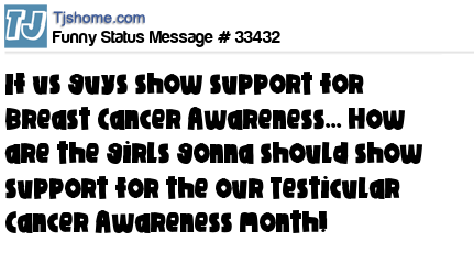 X If us guys show support for Breast Cancer Awareness... How are the girls gonna should show support for the our Testicular Cancer Awareness month!