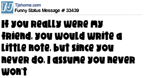 X says if you really were my friend, you would write a little note, but since you never do, I assume you never won't