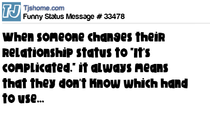 - # 23287 what does Relationship Status "ITS COMPLICATED" really means...Does it mean a Single man with Broken Hand or a Married person not getting any sex and hand broken too.?...Somebody please EXPLAIN