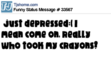 - # 161735 Why do people always make jokes insinuating that people who use crayons are crazy? I like my crayons! Especially the blue one. It makes my poo purple