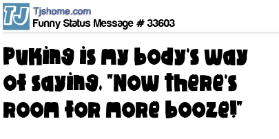 X Puking is my body's way of saying, "Now there's room for more booze!"