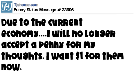 X  Due to the current economy....I will no longer accept a penny for my thoughts. I want $1 for them now.