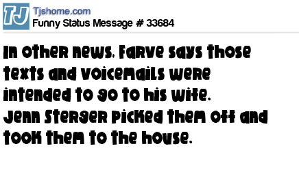 X is In other news, Farve says those texts and voicemails were intended to go to his wife.  Jenn Sterger picked them off and took them to the house.