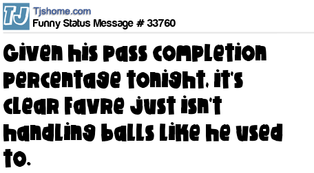 X Given his pass completion percentage tonight, it's clear Favre just isn't handling balls like he used to.