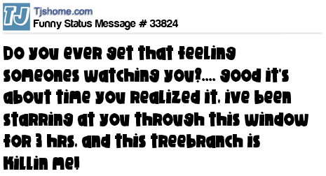 X is do you ever get that feeling someones watching you?.... good it's about time you realized it, ive been starring at you through this window for 3 hrs, and this treebranch is killin me!
