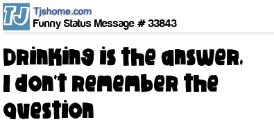 - # 115404 when people say that drinking is not the answer, it makes me wonder if they truly understand the question.