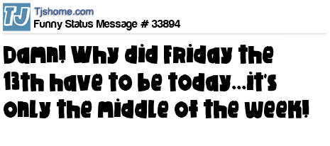 X  Damn! Why did Friday the 13th have to be today...it's only the middle of the week!