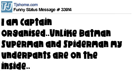 X is I am Captain Organised..Unlike Batman Superman and Spiderman my underpants are on the inside..