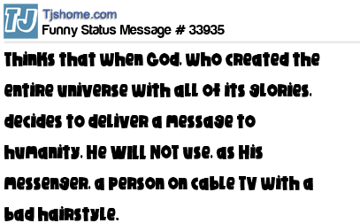 X thinks that when God, who created the entire universe with all of its glories, decides to deliver a message to humanity, He WILL NOT use, as His messenger, a person on cable TV with a bad hairstyle.