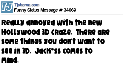 X is really annoyed with the new Hollywood 3D Craze. There are some things you don't want to see in 3D, Jack*ss comes to mind.