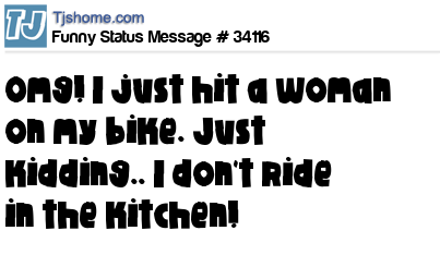 - # 171846 Omg! I just hit a woman on my bike. Just kidding.. I don't ride in the kitchen!