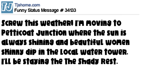 X Screw this weather! I'm moving to Petticoat Junction where the sun is always shining and beautiful women skinny dip in the local water tower. I'll be staying the The Shady Rest.