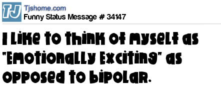 X I like to think of myself as "Emotionally Exciting" as opposed to bipolar.