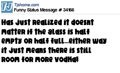 X is has just realized it doesnt matter if the glass is half empty or half full...either way it just means there is still room for more vodka!