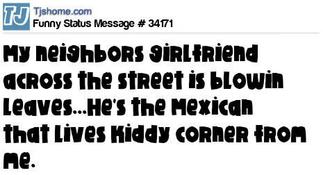 - # 156851 The grass is greener on the other side because my neighbors are Mexican.