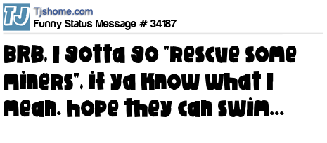 X BRB, I gotta go "rescue some miners", if ya know what I mean. hope they can swim...