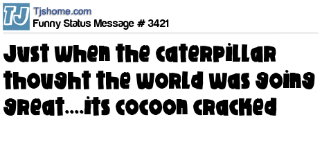 X says just when the caterpillar thought the world was going great....its cocoon cracked