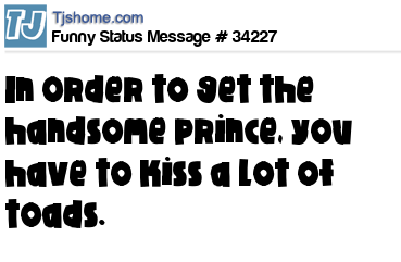 - # 18687 Before you meet your prince you have to kiss a lot of toads.