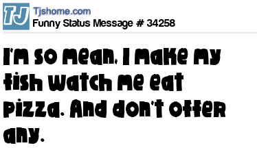 X I'm so mean, I make my fish watch me eat pizza. And don't offer any.