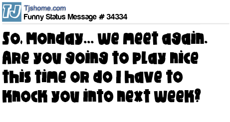 X So, Monday... we meet again. Are you going to play nice this time or do I have to knock you into next week?