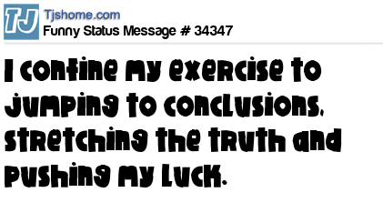 - # 160641 Weekly I confine my exercises to jumping to conclusions, stretching the truth and pushing my luck. I have already lost at least 3 friends....