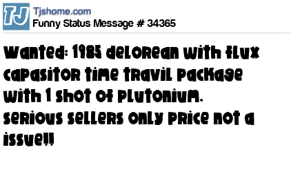 X Wanted: 1985 delorean with flux capasitor time travil package with 1 shot of plutonium. serious sellers only price not a issue!!