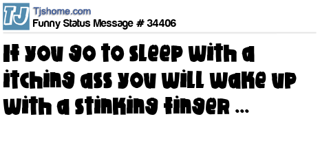 X says If you go to sleep with a itching ass you will wake up with a stinking finger ...
