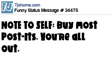 X is NOTE TO SELF: Buy most Post-Its. You're all out.