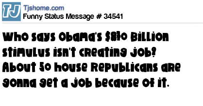X Who says Obama's $870 Billion stimulus isn't creating job? About 50 house Republicans are gonna get a job because of it.