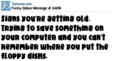 - # 29015 Signs you're getting old. Trying to save something on your computer and you can't remember where you put the floppy disks.