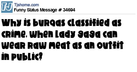 X why is burqas classified as crime, when lady gaga can wear raw meat as an outfit in public?