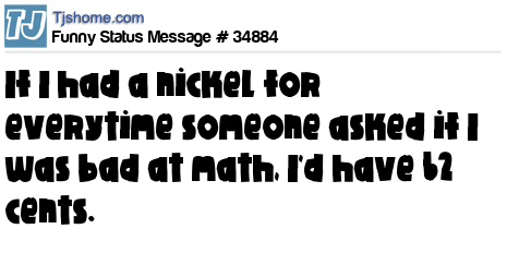 - # 174197 if I had a nickel for everytime someone told me I'm bad at math,id have 47 cents