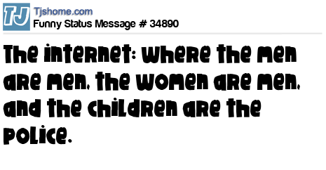 X The internet: where the men are men, the women are men, and the children are the police.